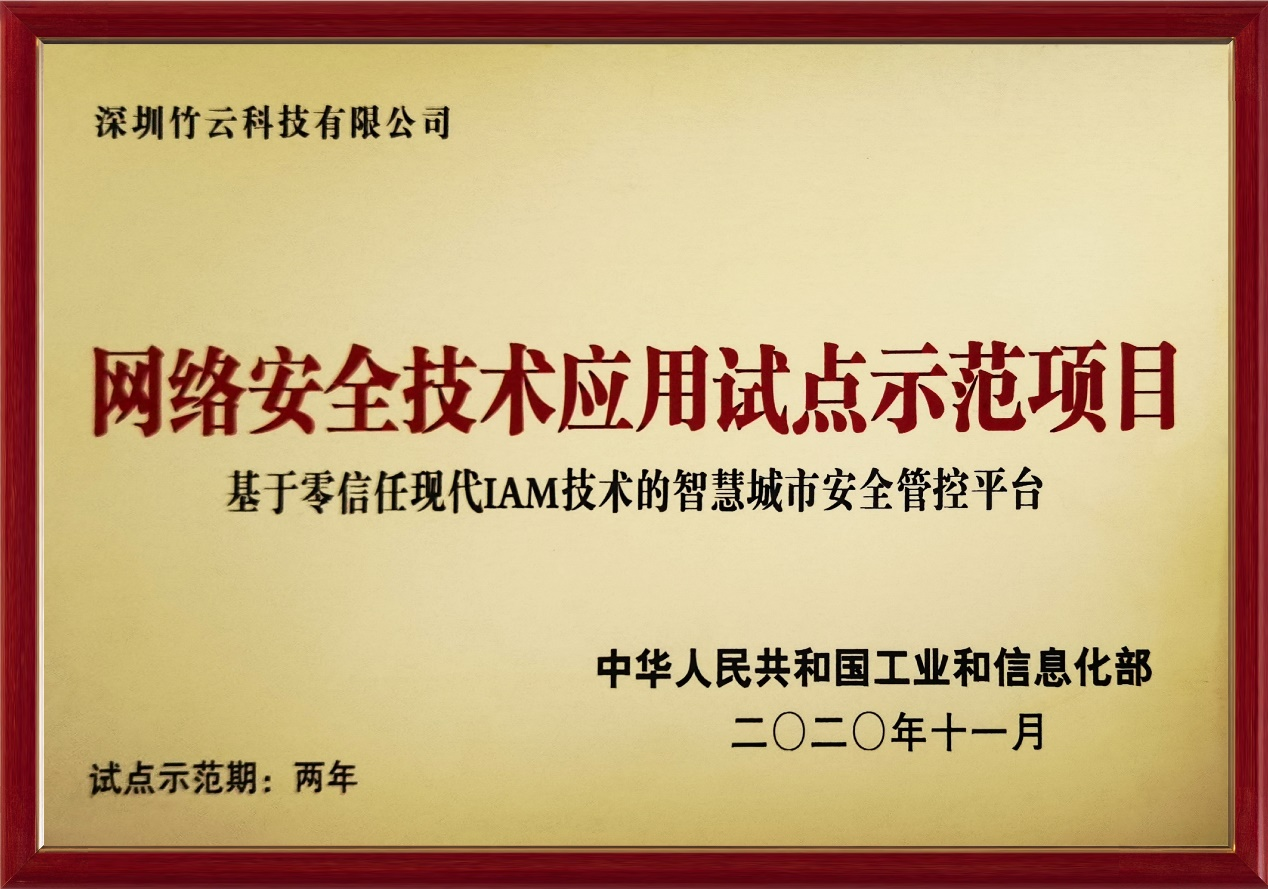 ★2020年,竹云智慧城市和工业互联网创新成果入选工信部《2020网络安全技术应用试点示范名录》;