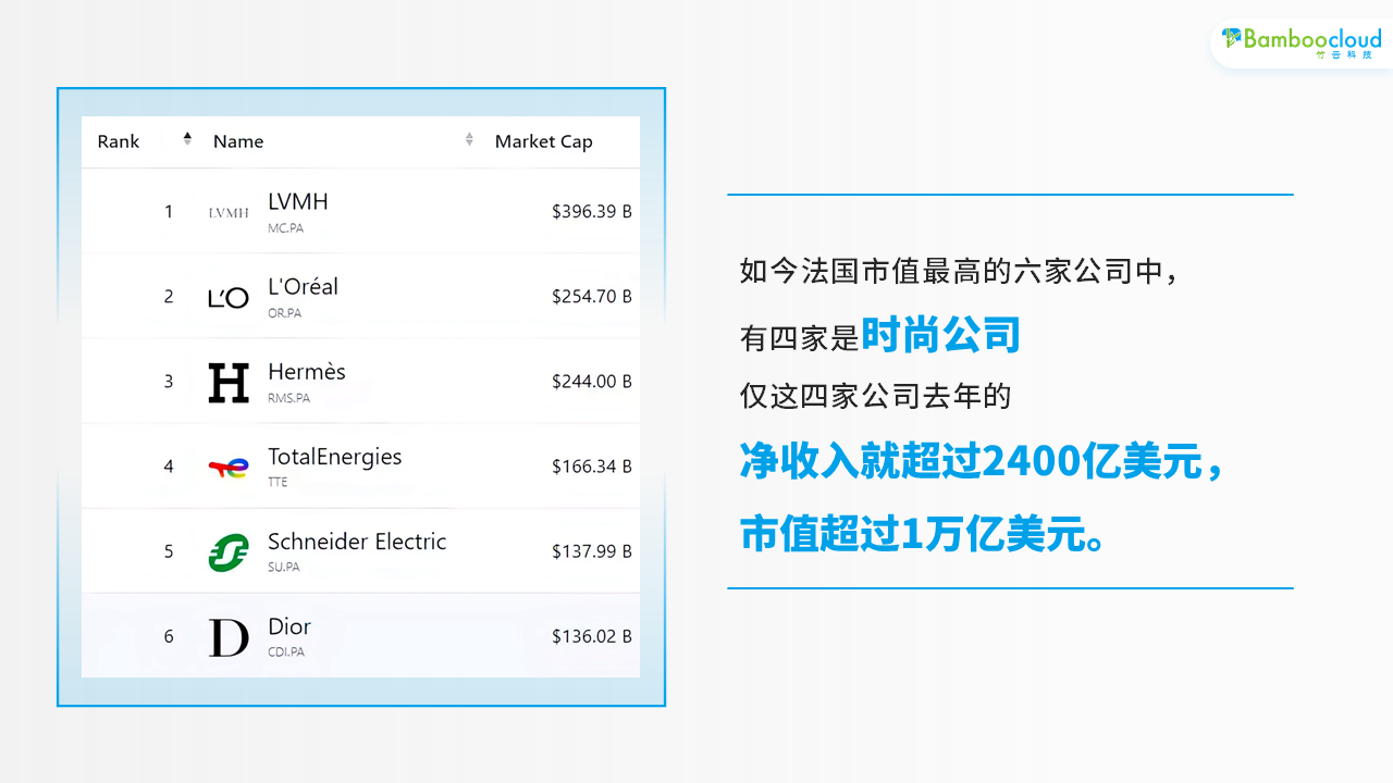 如今法国市值最高的六家公司中,有四家是时尚公司。仅这四家公司去年的净收入就超过2400亿美元,市值超过1万亿美元。