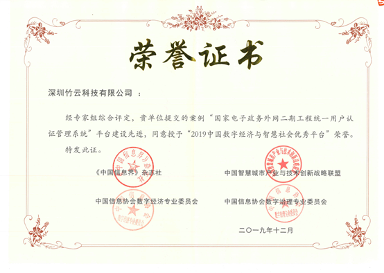 ★2019年,竹云配合国家相关部委完成统一用户与权限管理的规范标准制定,并作为国务院国资委国资国企在线监管系统的核心基础设施,建立统一用户、认证授权、权限管理和安全审计的标准体系和数据规范;科技创新成果入选工信部网络安全技术应用试点示范;