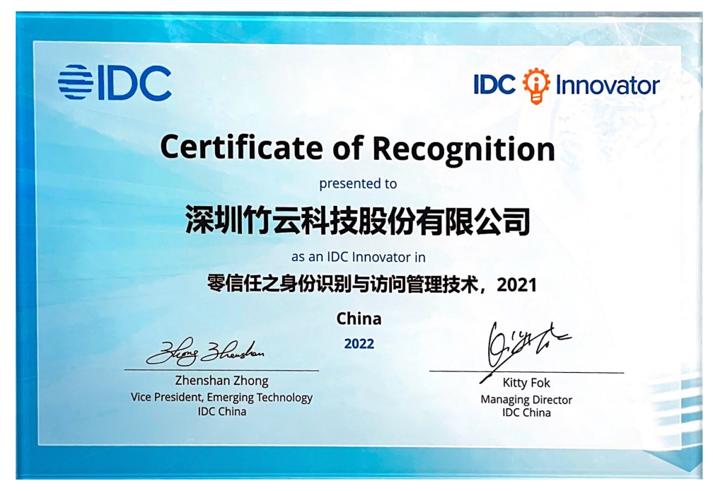 ★2021年,竹云入选《福布斯中国企业科技50强》以及IDC《2021 中国零信任之身份识别与访问管理技术-创新者》;