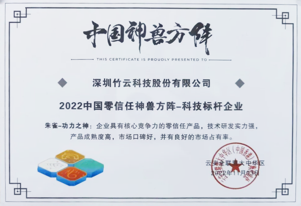 ★2023年,竹云荣登《2023胡润全球猎豹企业榜》;荣获《华为全球优秀行业解决方案伙伴》以及《2023粤港澳大湾区高质量发展标杆企业奖》;
