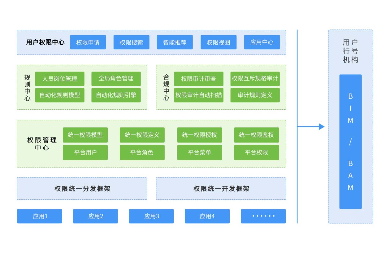 统一权限开发框架将应用权限的建设体系通过SDK等形式进行标准化封装,新建系统通过使用该框架可以快速建立符合合规要求的权限功能模块,大大降低新建系统权限合规化建设成本。